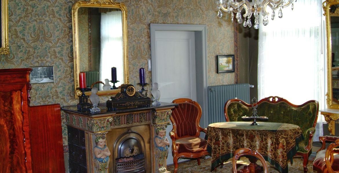 De in classicistische stijl gebouwde woning werd rond 1880 door een Nederlandse architect verbouwd. Daarbij ontstond het buitengewone mansardedak.